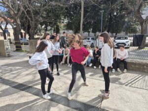 Cilj ove aktivnosti bio je potaknuti učenike da zajedno skaču, igraju se i druže. Kroz smijeh, kretanje i timsku igru učenici su otkrili koliko jednostavne igre mogu biti zabavne.